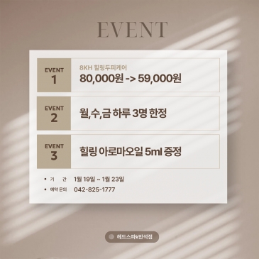 HEADSPA K 2026 신년 파격 이벤트 무려 61% 할인, 지금이 기회입니다 ✨ 첫 방문 고객님이라면 ♀️ 헤드스파 프로그램 단돈 39,000원 정가 100,000원 7M 프로그램 → 39,000원 1월 한 달 내내 진행 추가 혜택 (둘 중 택 1) ✔ 두피 정밀 진단비 20,000원 → 0원 ✔ 신년 특별 할인 혜택 탈모 케어 · 문제성 두피 전문 1:1 두피 정밀 맞춤 진단으로 당신의 두피에 꼭 맞는 솔루션을 제공합니다 예약 방법 가맹점 전화예약 052 211 4645 010 5519 6438 네이버 예약 2026년, 두피부터 달라지세요 HEADSPA K에서 시작하세요. 울산 성남점