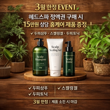 정액권 구매시 샴푸 + 스켈링겔 + 토닉 증정!